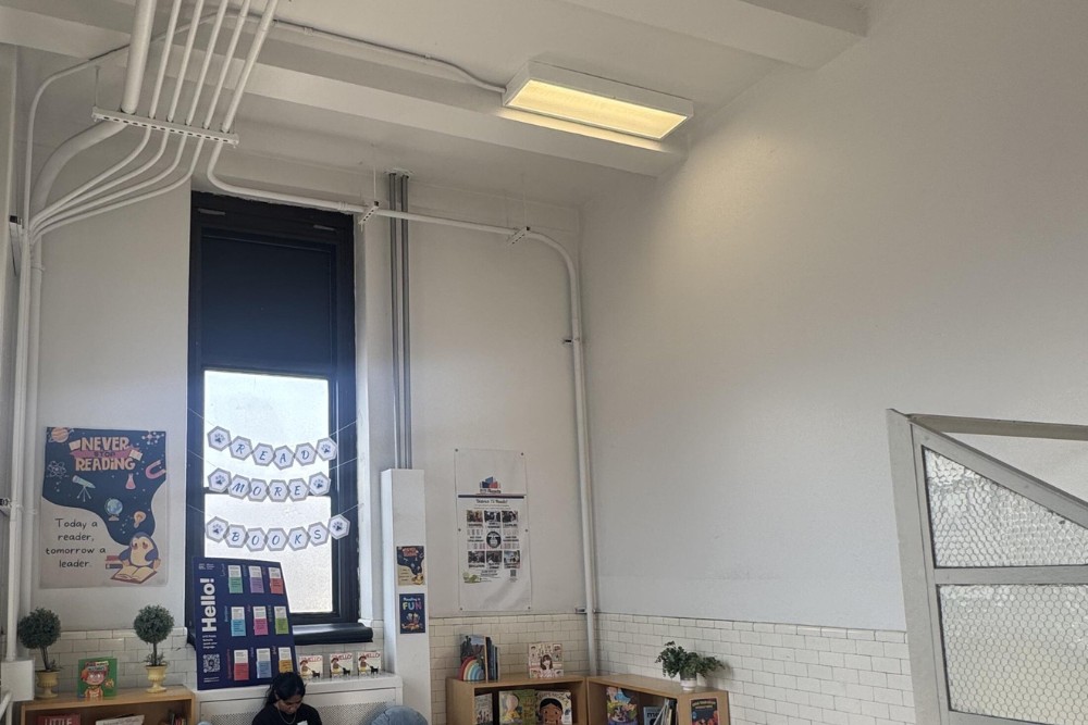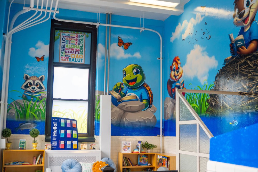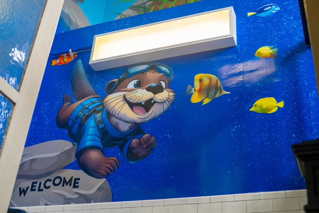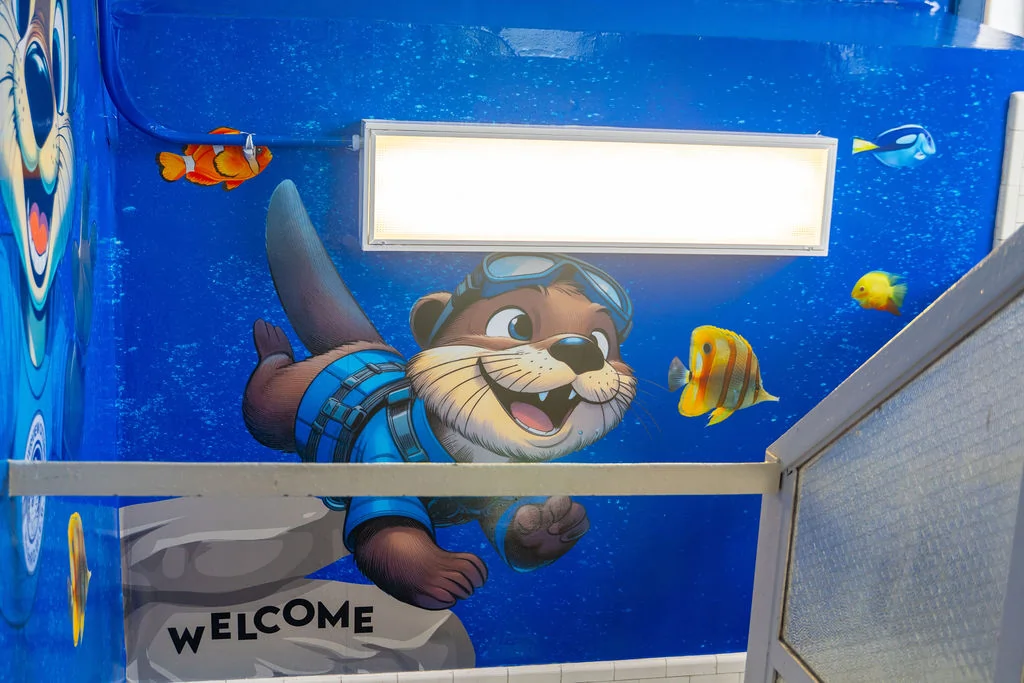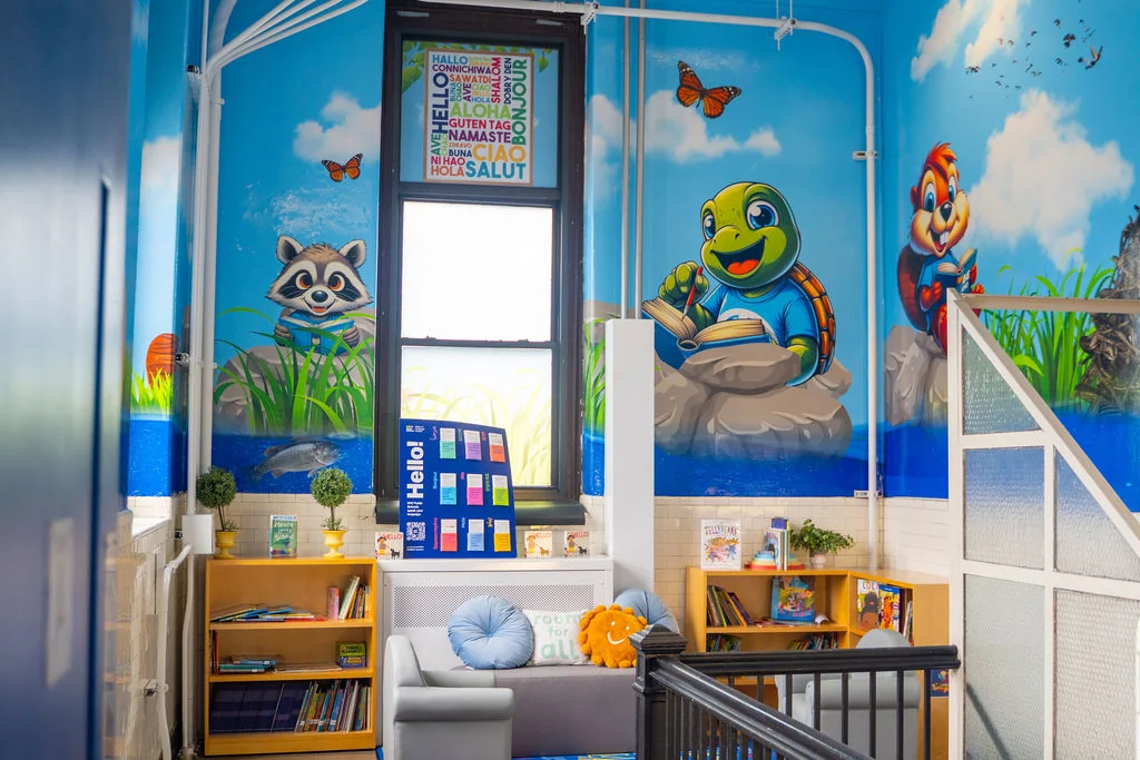 As the primary entry for two schools, we transformed this staircase into a playful river-themed nature escape to inspire students, staff and teachers as they prepare for class.