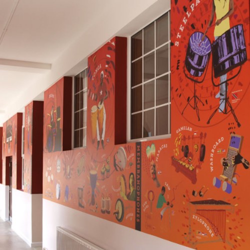 Design large-scale murals celebrating the school’s history, diversity, and achievements to foster pride and community connection.